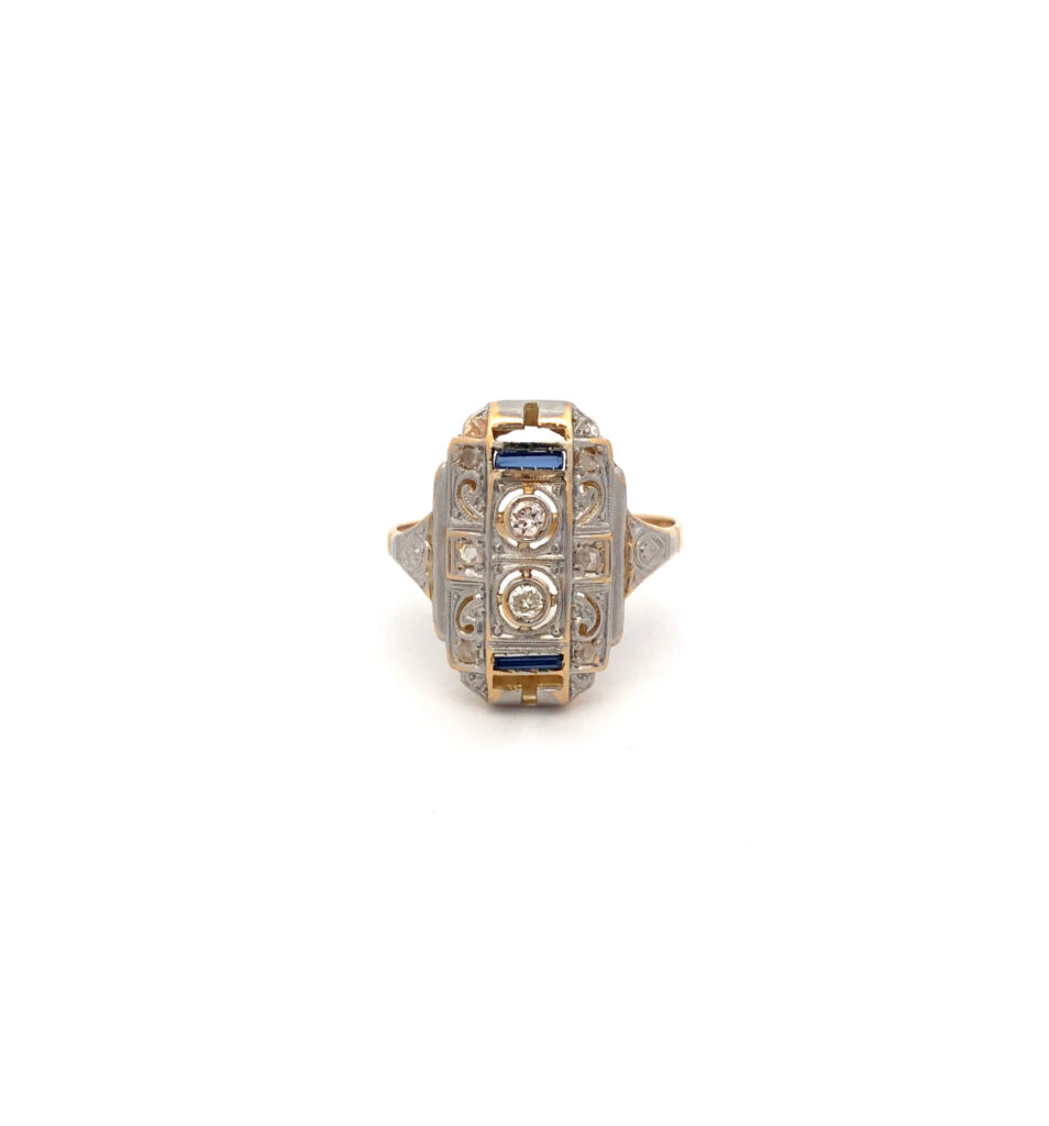 Anillo Francés Oro 18 Kt Pelo De Elefante Y Rubíes